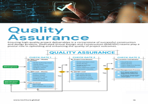 We ensure project quality by implementing strict QA/QC techniques, conducting LOD compliance checks, conducting coordination reviews, adhering to BIM standards, and meeting client requirements.